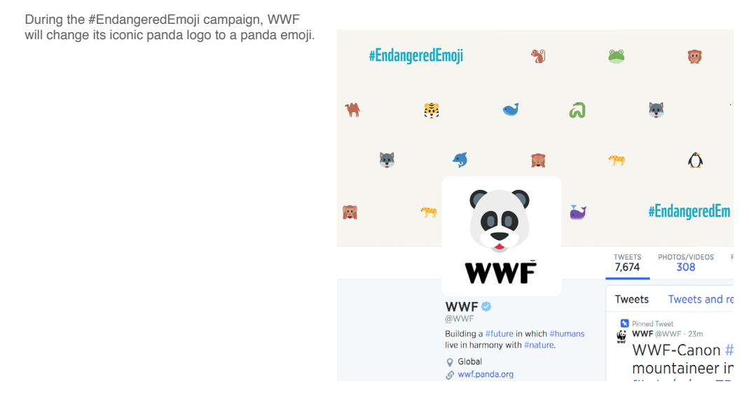 The world’s first emoji-based fundraising campaign - the premise: get people on Twitter signed up to donate every time they use one of the endangered emojis in a Tweet via a monthly bill (also received via Twitter).